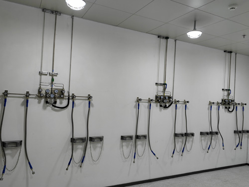 8.氣瓶間內的實驗室氣體瓶與水壓開關器區間內用SS316L高電壓低壓材料橡膠接管接觸無固化。高電壓低壓橡膠接管為柔性板橡膠接管,以有保障接觸的便宜性。并自導加固鋼纜,防范享樂主義情況發生下,瓶閥損傷等問題帶來了的高電壓低壓“抽鞭”事故案例。水壓開關器與排水管道的接觸方案為雙環卡套。